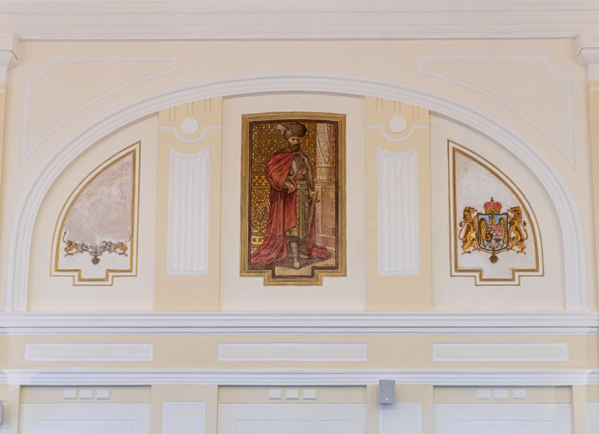 Din fericire, atât figura lui Mihai Viteazul, cât și cele două steme au prezentat toate elementele necesare unei reconstrucții autentice. Totodată, în sala festivă, au fost restaurate toate picturile și elementele decorative care au fost descoperite la nivelul tavanului.