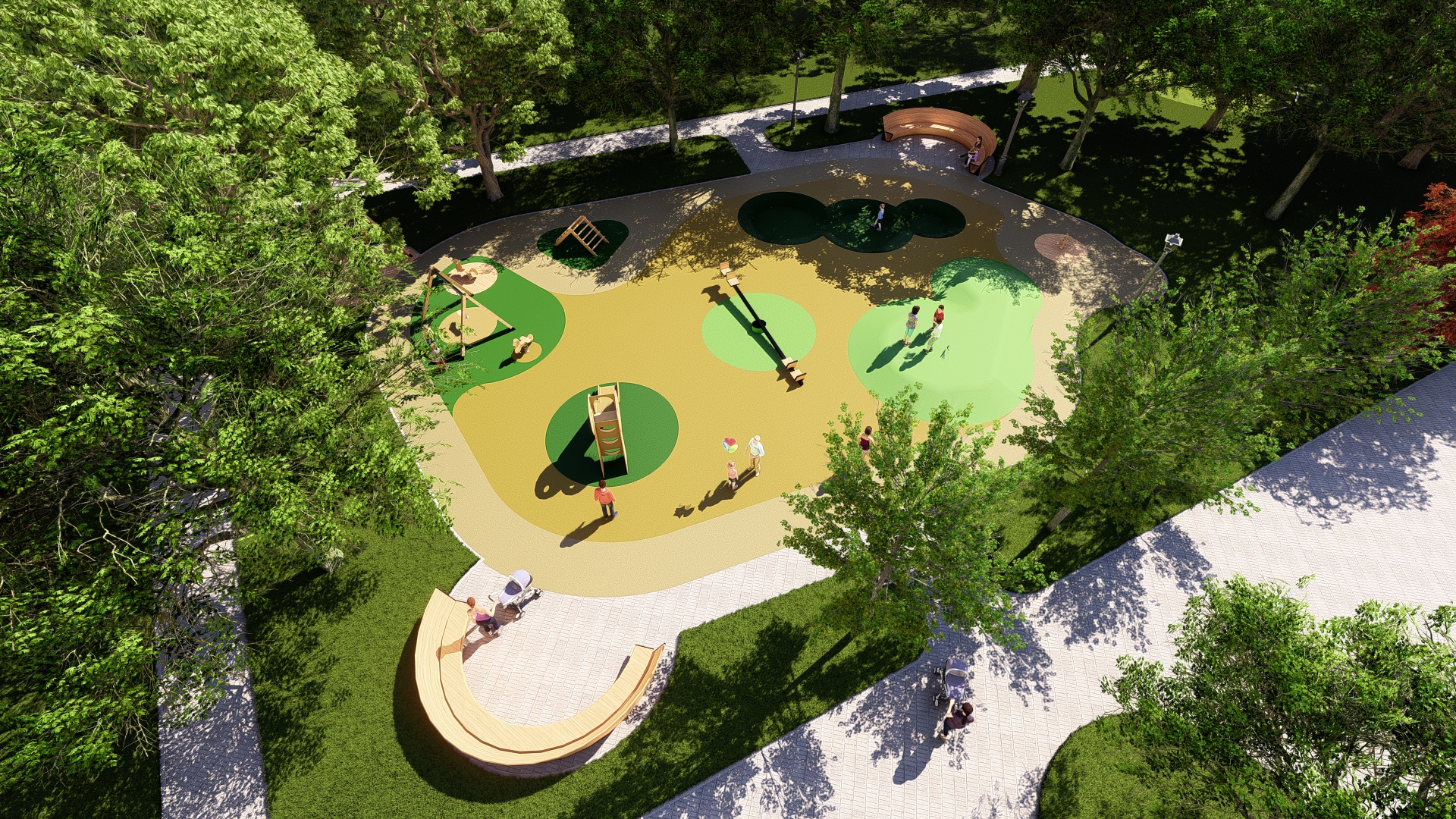 Locul de joacă va fi modernizat integral, urmând să fie dotat cu echipamente fabricate din materiale naturale, adecvate atât copiilor cu vârsta de până la 12 ani, cât și celor cu dizabilități. De asemenea, se vor amenaja suprafețe întinse cu mixuri de plante perene florale și erbacee, iar proiectul prevede și construirea unui iaz auto-sustenabil.
