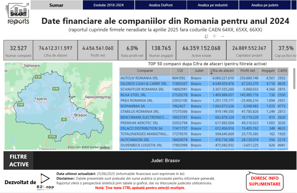 Industria prelucrătoare domină topul – cu specializări în Automotive, Metalurgie, Aeronautică și Electronică –, demonstrând că Brașovul este mult mai mult decât o destinație turistică: este un veritabil hub de producție, tehnologie și export pentru România.