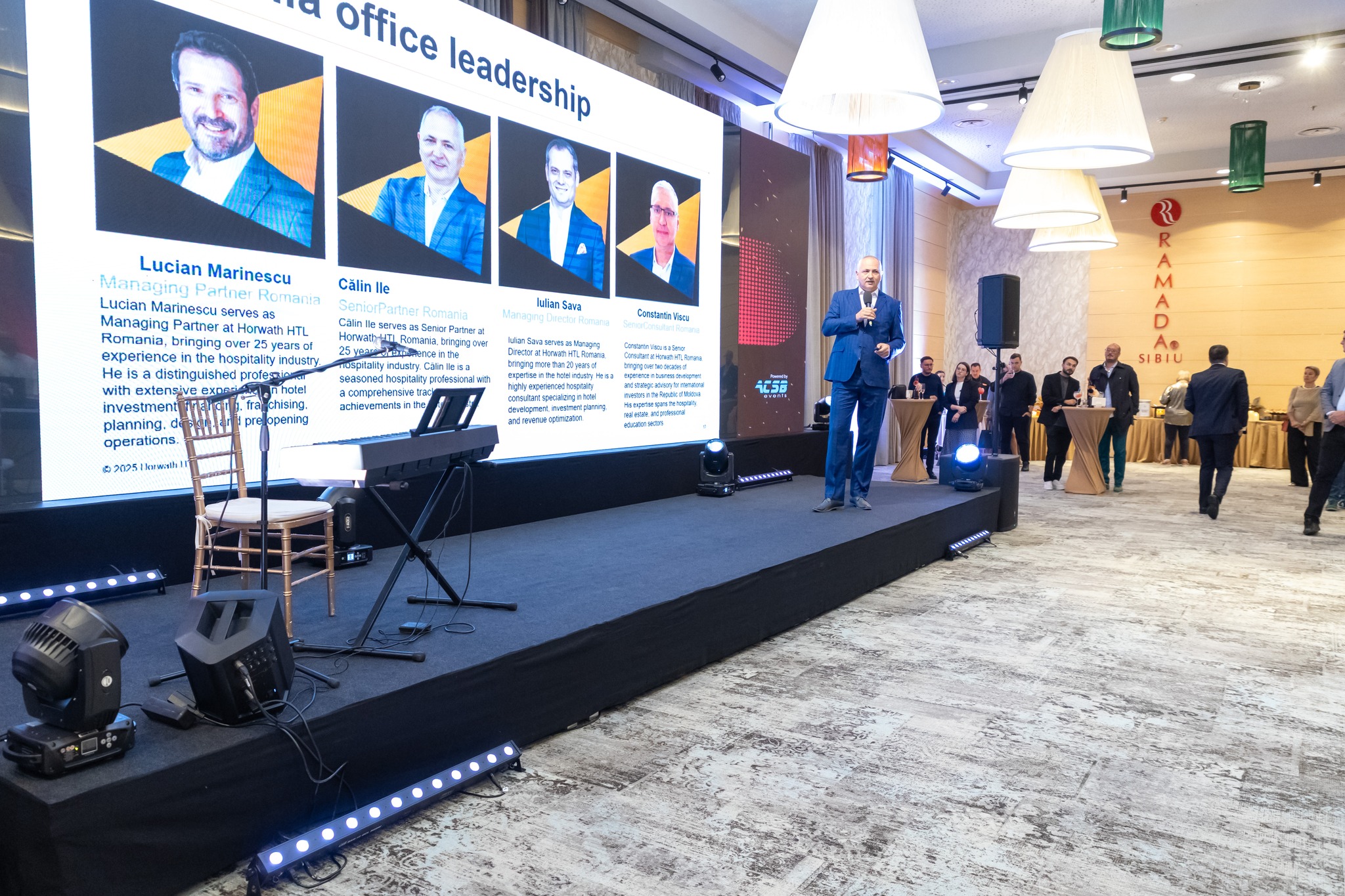 Evenimentul a fost deschis de Mihaela Panaiot, General Manager Ramada Sibiu, care a prezentat inovațiile centrului. Ulterior, acționarii Lucian Marinescu (Premier Hospitality) și Călin Ile (Horwath HTL) au subliniat rolul strategic al investiției: creșterea satisfacției oaspeților, reconectarea cu comunitatea locală și integrarea hotelului în strategia de turism a Sibiului.