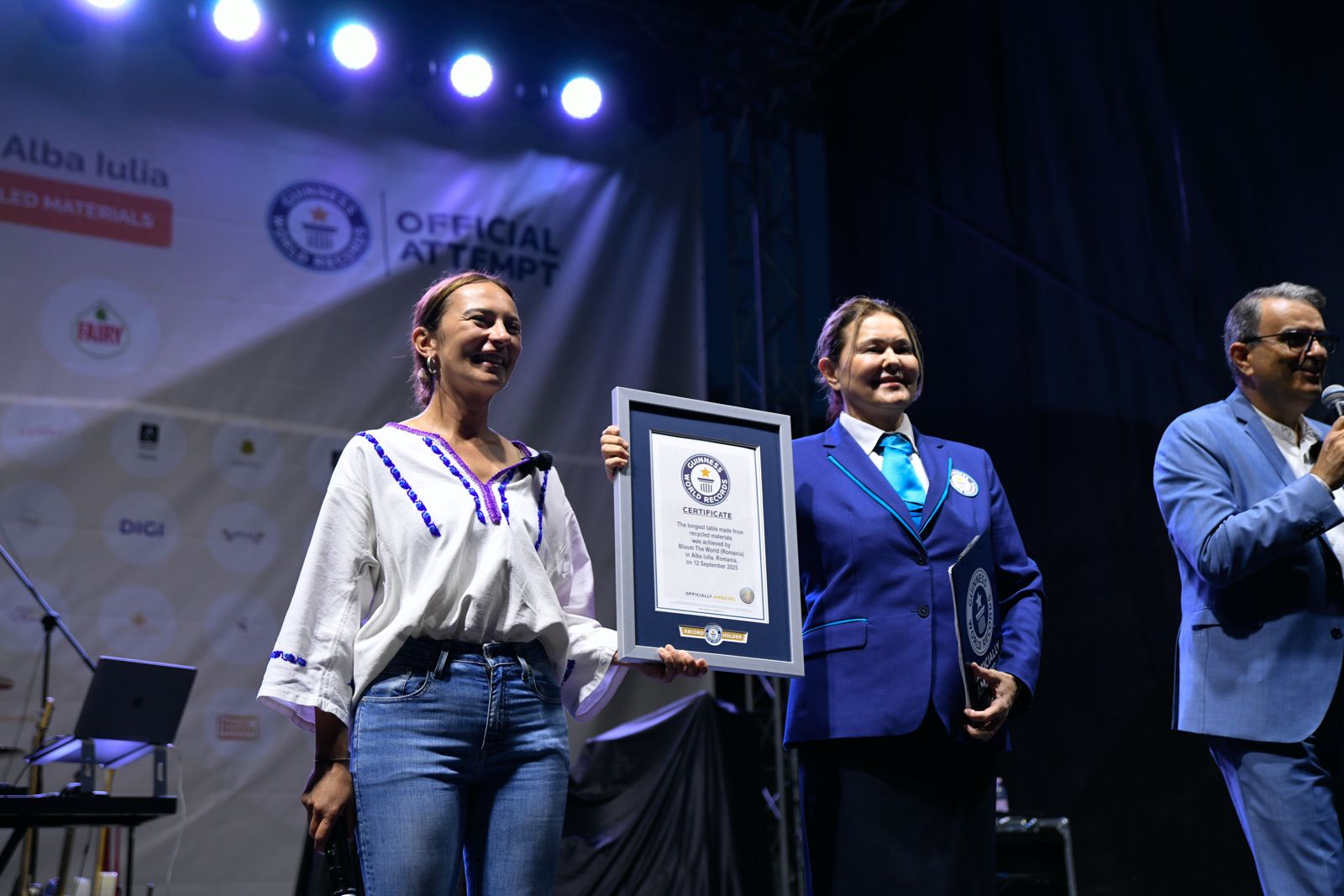 „Lungimea minimă pentru stabilirea recordului setat de Guinness World Records a fost de 2.700 de metri, iar organizatorii au reușit să obțină 2.782,96 de metri. Este o onoare pentru mine să anunț oficial un nou record pentru cea mai lungă masă făcută din materiale reciclabile, stabilit de Bloom the World. Felicitări! Sunteți oficial minunați!”, a declarat Seyda Subasi-Gemici, reprezentant Guinness World Records.
