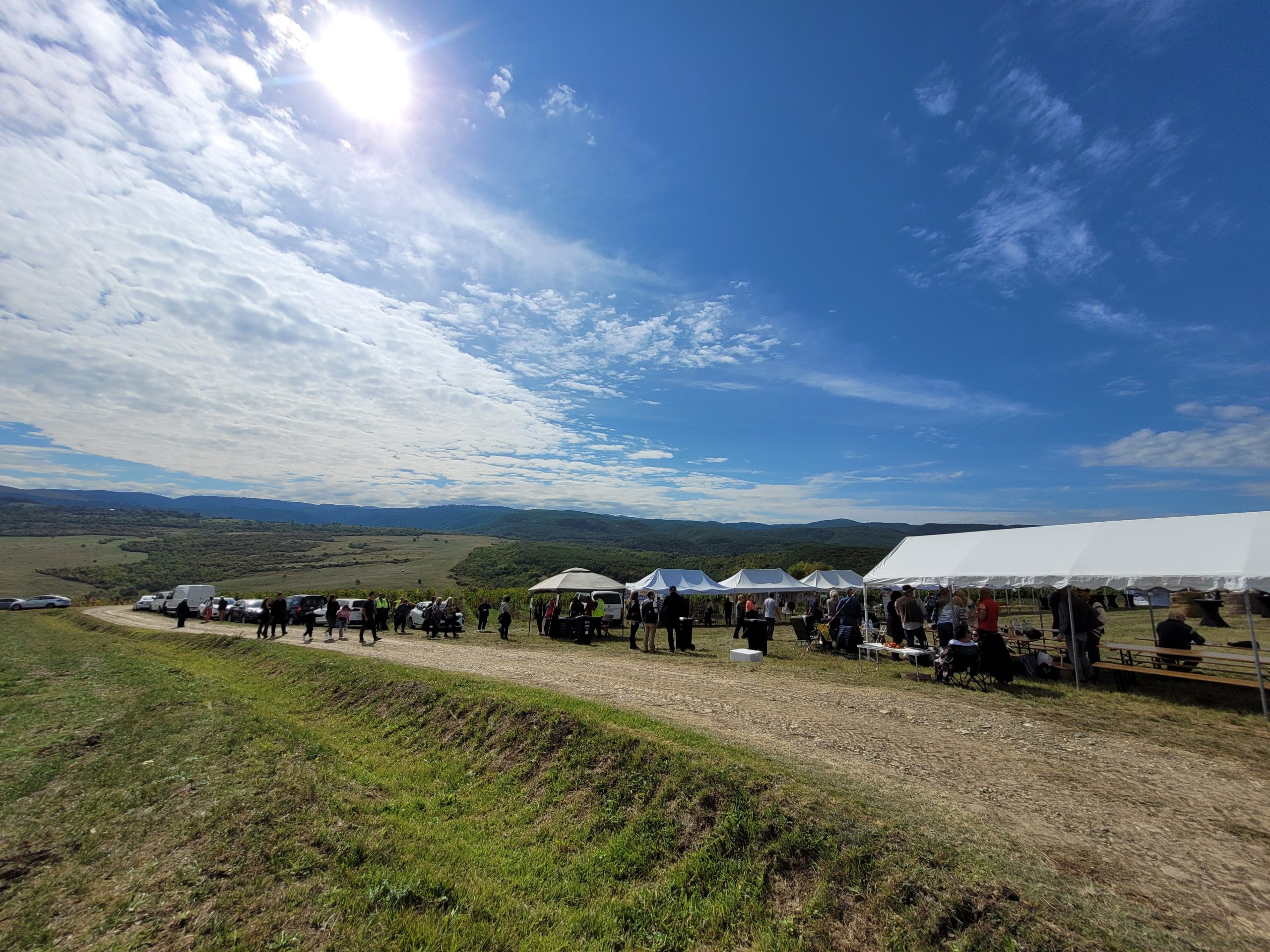 Platoul pe care s-a desfășurat festivalul oferă o perspectivă spectaculoasă asupra dealurilor îmbrăcate cu viță de vie, aflate deasupra satului sibian. Soarele de septembrie târziu a luminat rândurile ordonate, făcând ca boabele rămase în vie să strălucească precum niște rubine. Atmosfera a fost completată de un aer proaspăt, cu parfum de pământ umed și frunze uscate, care a adus aminte tuturor că vinul bun se naște din răbdarea toamnei.