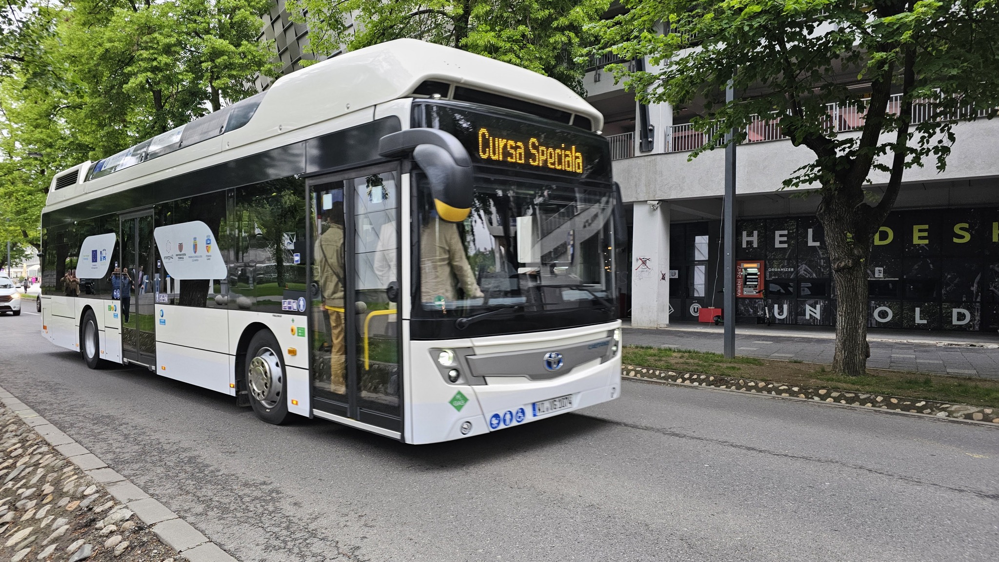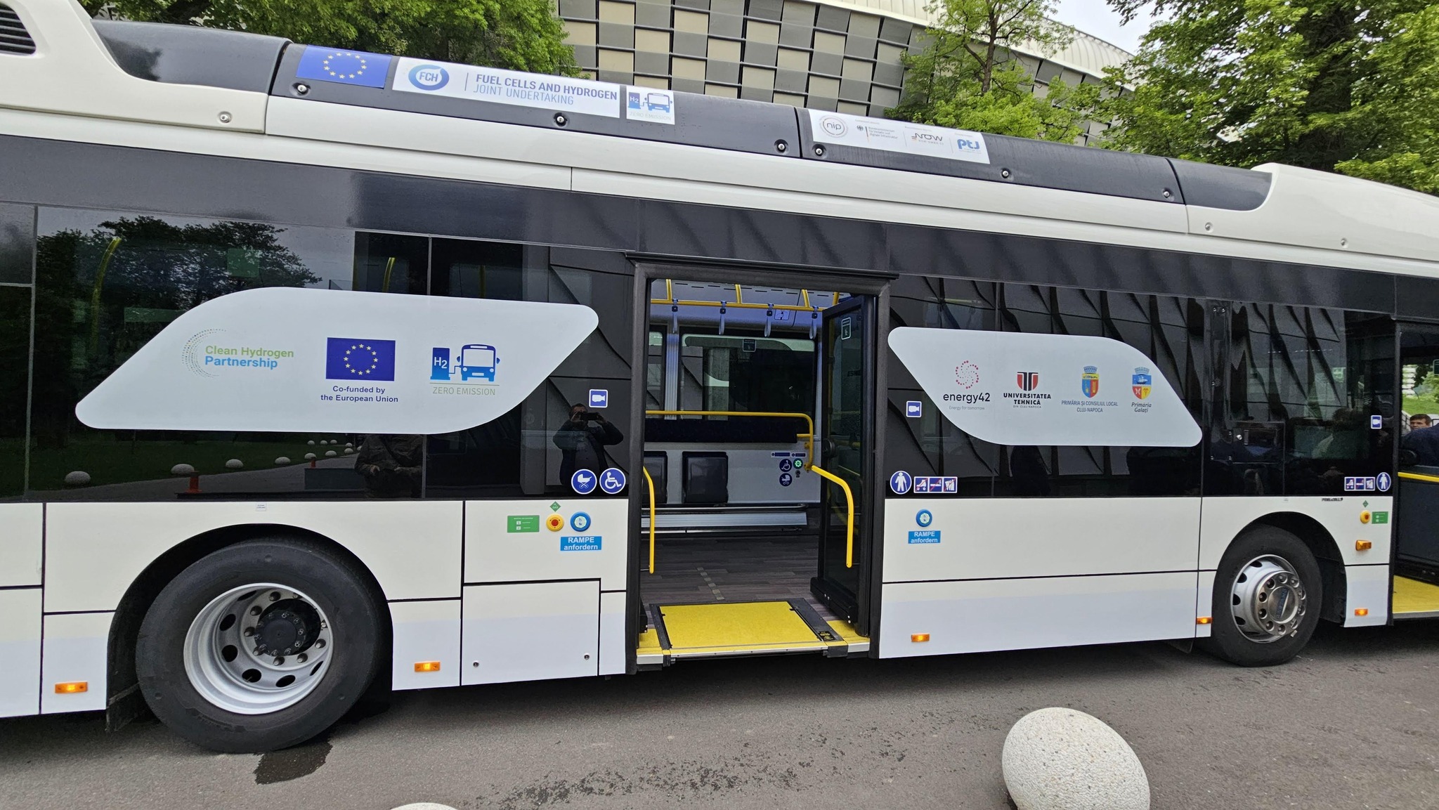 “Cluj-Napoca este orașul cu stadiul cel mai avansat din România în investiția unei stații de producere locală a hidrogenului. Automat lucrurile devin mult mai interesante pentru că atunci scad costurile de producție, iar costul pe kilometru devine mult mai mic. Modelul pe care îl prezentăm aici îndeplinește cu succes toate cerințele unui autobuz urban.