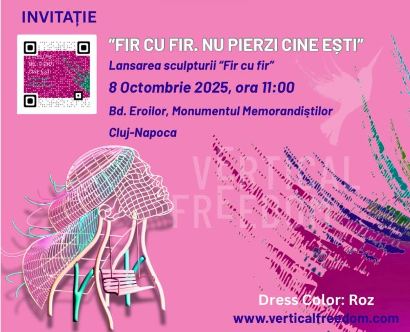 B-dul Eroilor din Cluj va găzdui, pe data de 8 octombrie, de la ora 11,00 am, inaugurarea sculpturii interactive „Fir cu fir”, semnată de artistul clujean Octavian Simion. Lucrarea devine un simbol public al curajului și demnității femeilor în lupta cu cancerul la sân și marchează startul oficial al campaniei „Fir cu fir. Nu pierzi cine ești” al fundației Vertical Freedom.